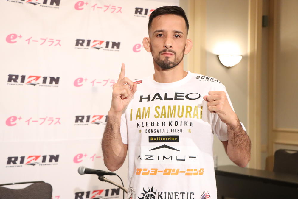メインイベント(第16試合)のRIZINフェザー級タイトルマッチ5分3Rで、ラジャブアリ・シェイドゥラエフ(キルギス)の挑戦を受ける王者クレベル・コイケ(ボンサイ柔術)が出席。試合への意気込みを語った。