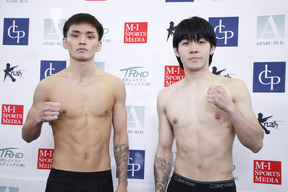 2025年5月25日(日)東京・後楽園ホール『Krush.176』の前日計量が、24日(土)都内にて正午より行われた。  第6試合のKrushバンタム級3分3R延長1Rで対戦する、白幡裕星(K-1ジム総本部チームペガサス)は53.0kg、長野翔(K-1ジム三軒茶屋シルバーウルフ)も53.0kgと両者ジャストで計量をパス。  白幡はアマチュアで多数の経験を積み、2018年10月にプロデビュー。20