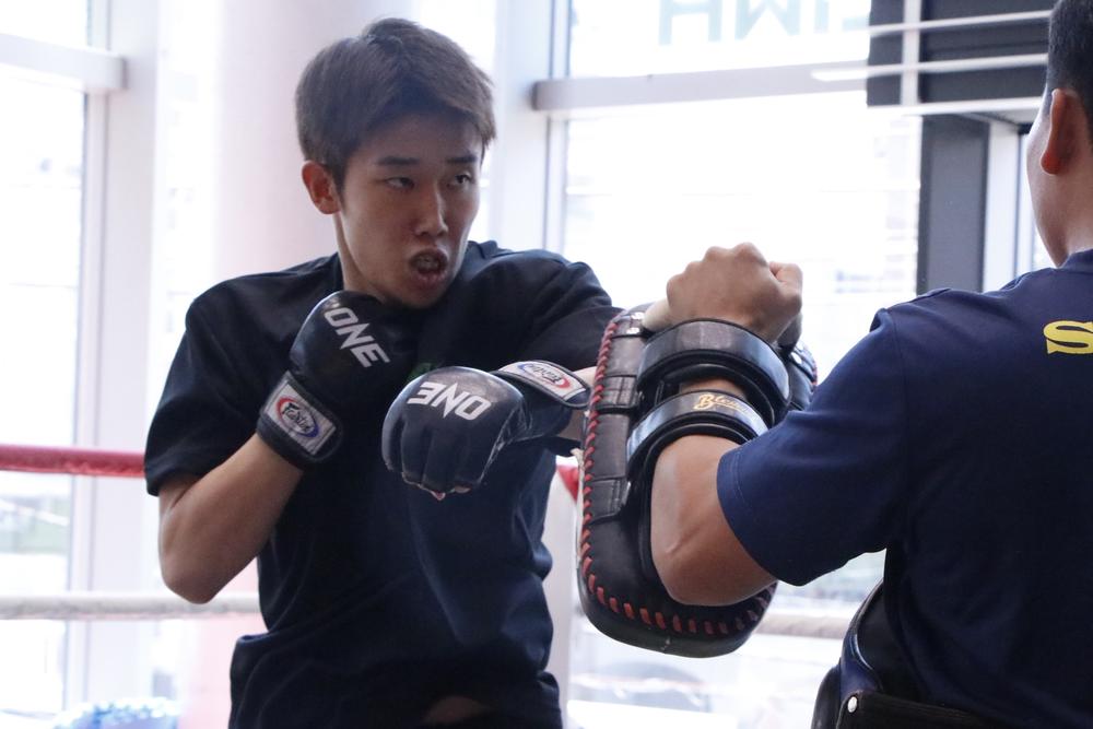 2025年6月27日(金)タイ・ルンピニースタジアム『ONE Friday Fights114』(U-NEXT配信)に出場する、石井寿来(ウォーワンチャイプロモーション)が19日(木)神奈川の所属ジムにて公開練習を行った。  ジュライ・ウォーワンチャイこと石井寿来は石井一成の甥で、一成と同じくジュニア時代からタイ遠征を重ねて2019年3月にルンピニースタジアムでプロデビュー。その後も日本とタイを