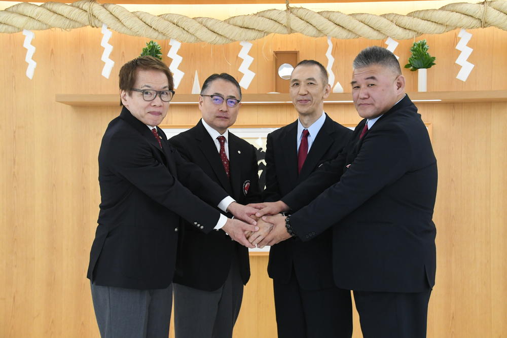 会見には極真会館から松井章奎館長、山田雅稔総本部長、全日本真正空手道連盟 真正会から鈴木修司代表代行、内田道本部長の4名が出席。