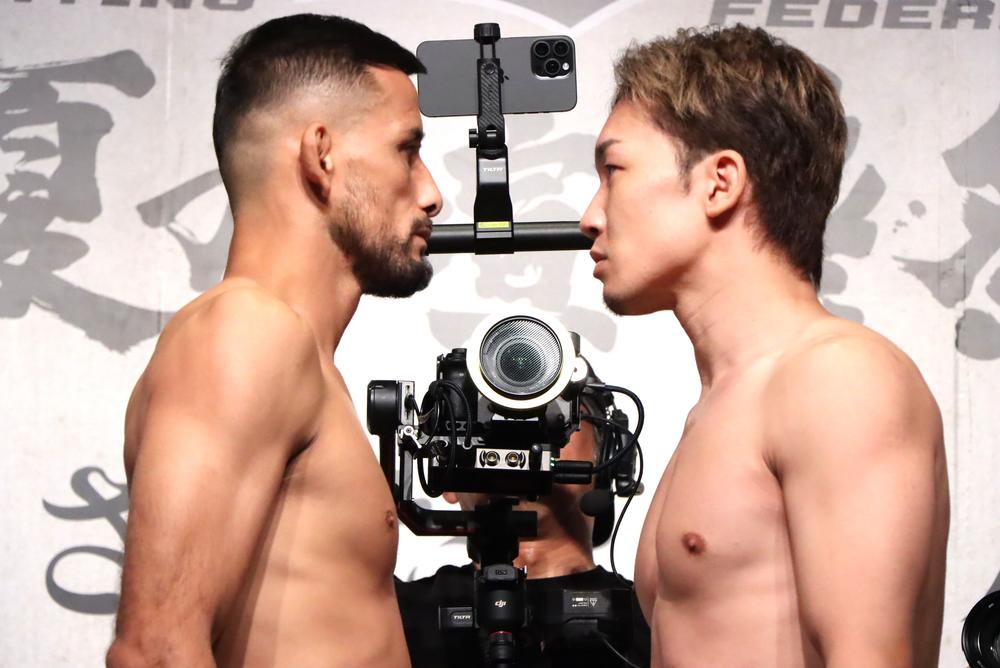 第15試合のRIZINフェザー級(66.0kg)5分3Rで対戦する、クレベル・コイケ(ボンサイ柔術)は65.85kg、朝倉未来(JAPAN TOP TEAM)はリミットちょうどの66.0kgでそれぞれパス。