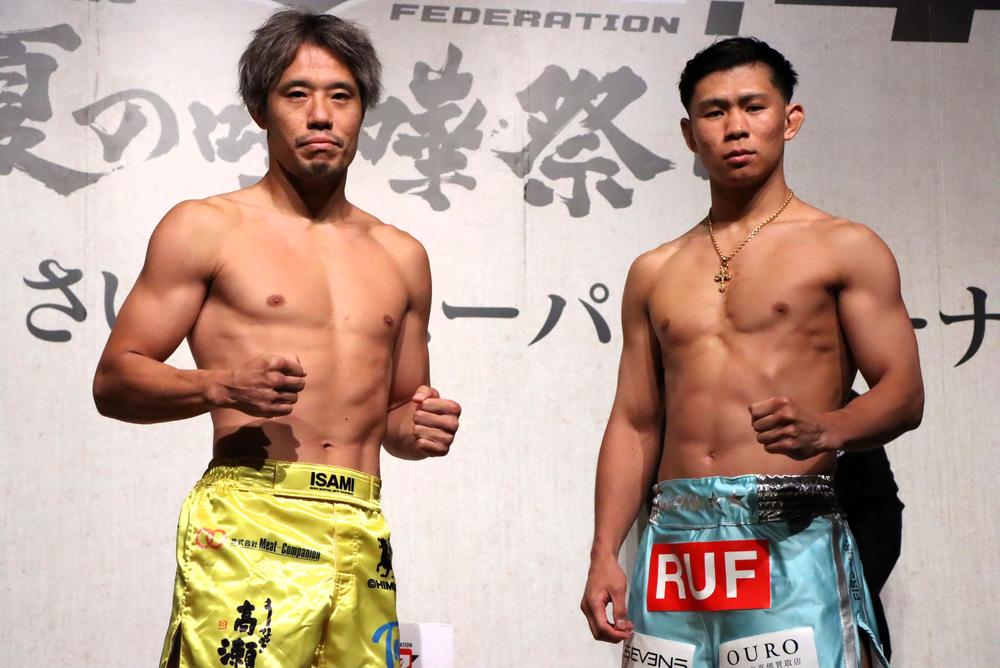 第13試合のRIZINフェザー級(66.0kg)5分3Rで対戦する、金原正徳(リバーサルジム立川ALPHA)は65.85kg、YA-MAN(TARGET SHIBUYA)は66.0kgでそれぞれ計量をパス。