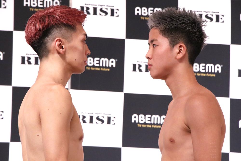 第10試合のSuperFight!スーパーフライ級(-53kg)3分3R延長1Rで対戦する、同級1位・政所仁(魁塾)は52.7kg、那須川龍心(TEAM TEPPEN)は52.95kgでそれぞ