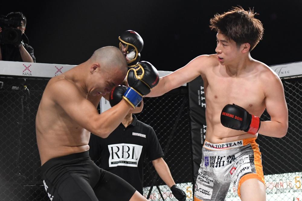 右カーフキックから右ストレートで打ち合いを挑むも、竹見の正確な右ストレート、右フックをもらってマットに沈んだとしぞうは「もうちょっと行けっかなって正直思ったんですけど、見えなかった。パンチが速ええっすわ」と、2018年国民体育