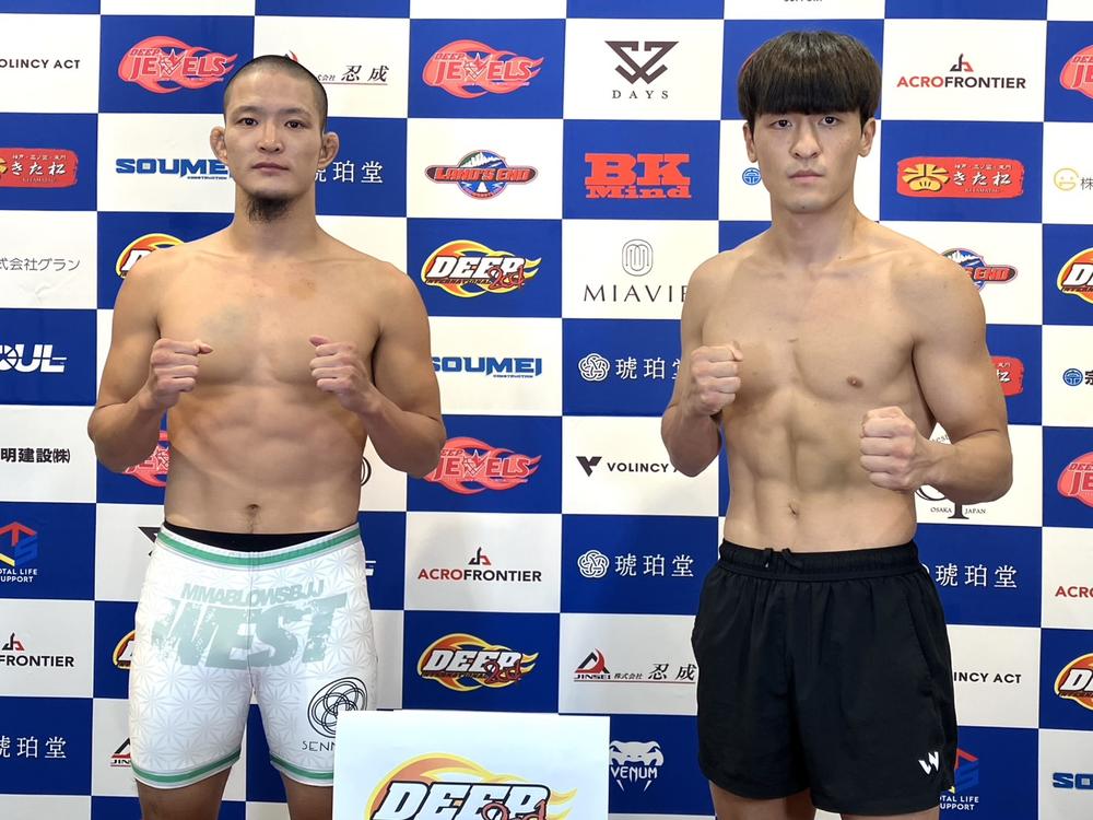 メインイベント(第10試合)のDEEPフェザー級5分3Rで対戦する、青井人 (BLOWS)が66.0kg、チェ・ソンヒョク (TEAM HAN CLUB)が65.85kgで