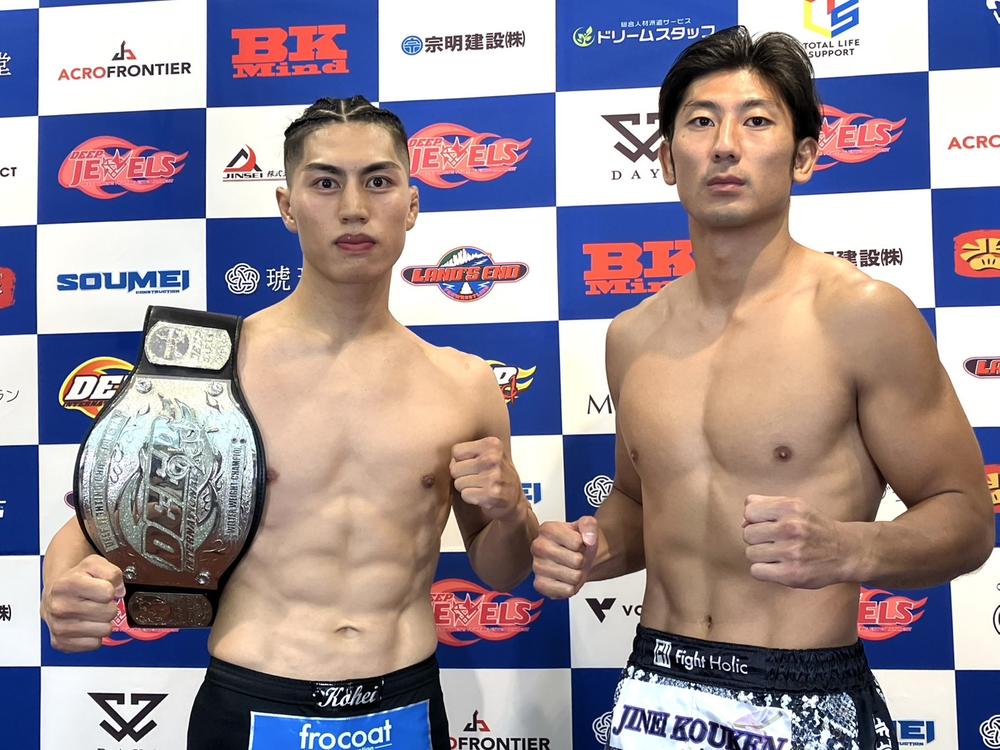 【DEEP】ウェルター級王者・角野晃平 「今後の格闘技人生において大事な試合」、挑戦者・嶋田伊吹「何が何でも勝ちます」=全選手が計量パス