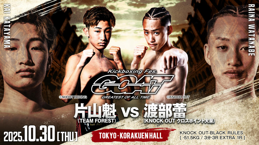 2025年10月30日(木)東京・後楽園ホールで初開催される新キックボクシングフェス『GOAT(GREATEST OF ALL TIME)』の追加対戦カードが発表された。
