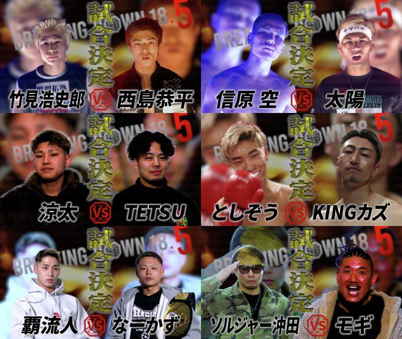 【BreakingDown】『BreakingDown18.5』の対戦カード6試合を追加発表、西島恭平vs.竹見浩史郎が決定、としぞう、TETSU、太陽、信原空らが出場に