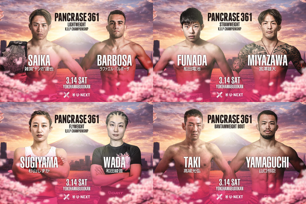 2026年3月14日(土)横浜武道館で開催される『PANCRASE 361』ナンバーシリーズ開幕戦で3大タイトルマッチを含む11カードが発表された。