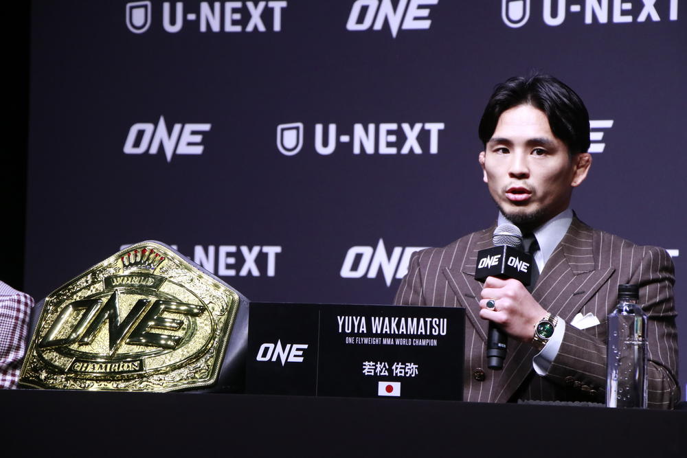 会見には、ONEフライ級(-61.2kg)MMA世界王者の若松佑弥(TRIBE TOKYO M.M.A)が出席。『ONE SAMURAI