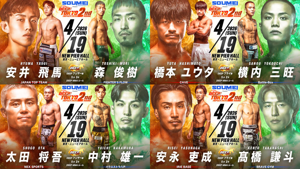 2026年4月19日(日)東京・ニューピアホールで開催される『SOUMEI Presents DEEP TOKYO IMPACT 2026 2nd ROUND』の14カードが発表された。