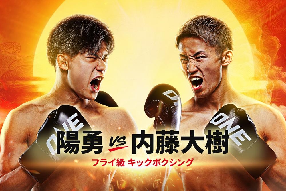 内藤大樹(Bell Wood Fight Team)と陽勇(=ひゆう/Team Mehdi Zatout/TEAM3K)の日本人対決が、ONEフライ級(-61.2kg)キックボクシング3分3Rで行われる。
