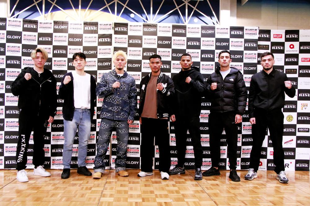 会見には「GLORY×RISE LAST FEATHERWEIGHT(-65kg)STANDING TOURNAMENT」の準々決勝に臨むRISEサイド4名、GLORYサイド4名が揃って出席。約1年間に渡って行われてきた壮大なトー