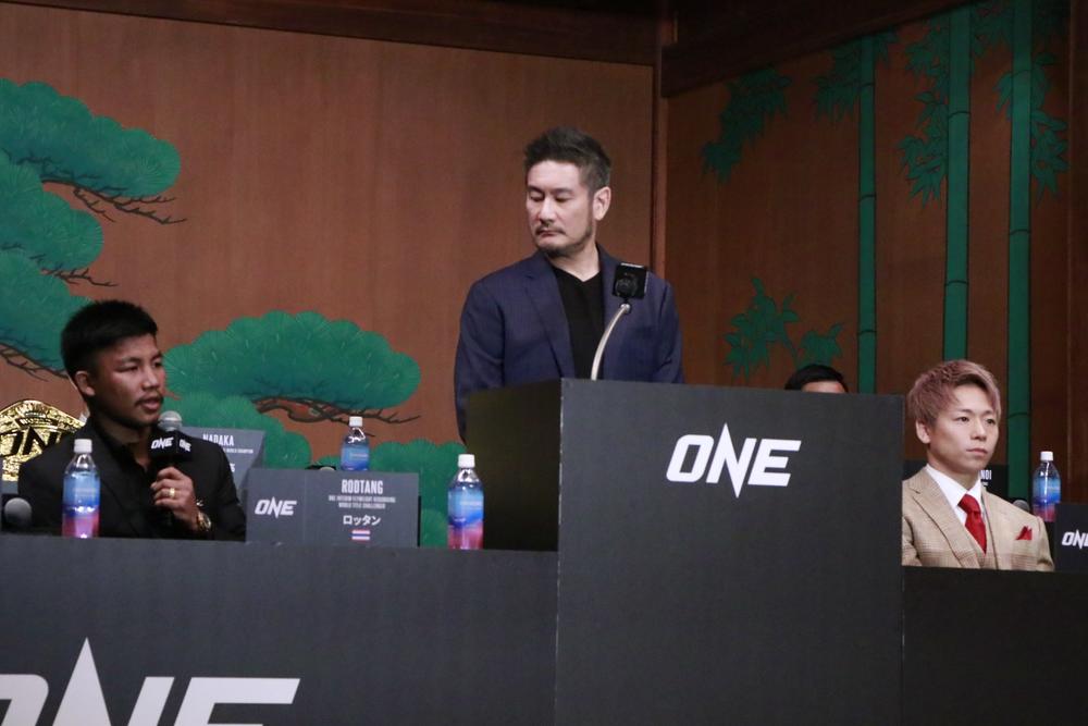会見には、ONEフライ級(-61.2kg)キックボクシング暫定世界タイトルマッチ3分5Rで再戦する、ロッタン・ジットムアンノン(タイ)と武尊(team VASILEUS)が揃って出席。