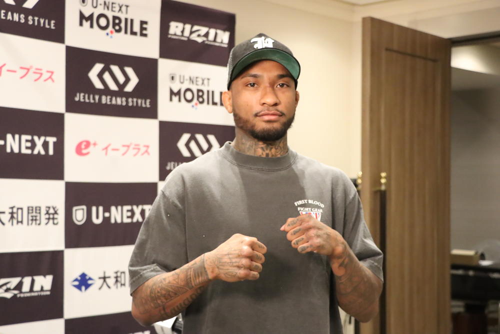 第9試合のRIZINフェザー級(66.0kg)5分3Rで、萩原京平(SMOKER GYM)と対戦する初参戦のアバイジャ・カレオ・メへウラ(米国)が出席。試合への意気込みを語った。