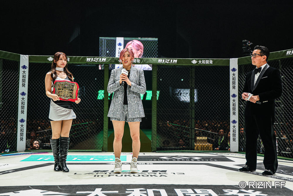 2026年4月12日(日)マリンメッセ福岡A館にて開催された『RIZIN LANDMARK 13 in FUKUOKA』にて、RIZINスーパーアトム級王者の伊澤星花(JAPAN TOP TEAM)が第1子妊娠のため王座を返上することが発表された。