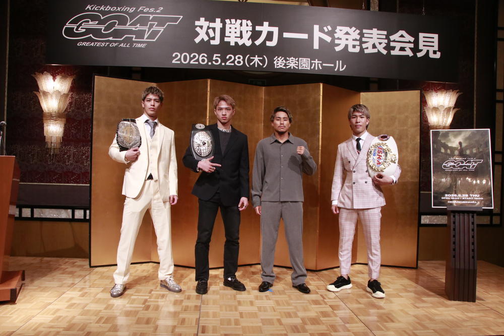 2026年5月28日(木)東京・後楽園ホール『キックボクシングフェス.2 GOAT』の対戦カード発表記者会見が、4月13日(月)都内にて行われた。