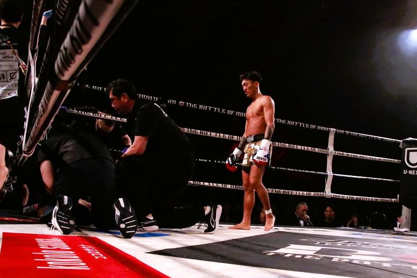 【写真】1Rにダウンを奪った黒田の負傷判定勝ちとなった 同試合は1Rに黒田がヒザでダウンを奪い、2Rに勢いよく飛