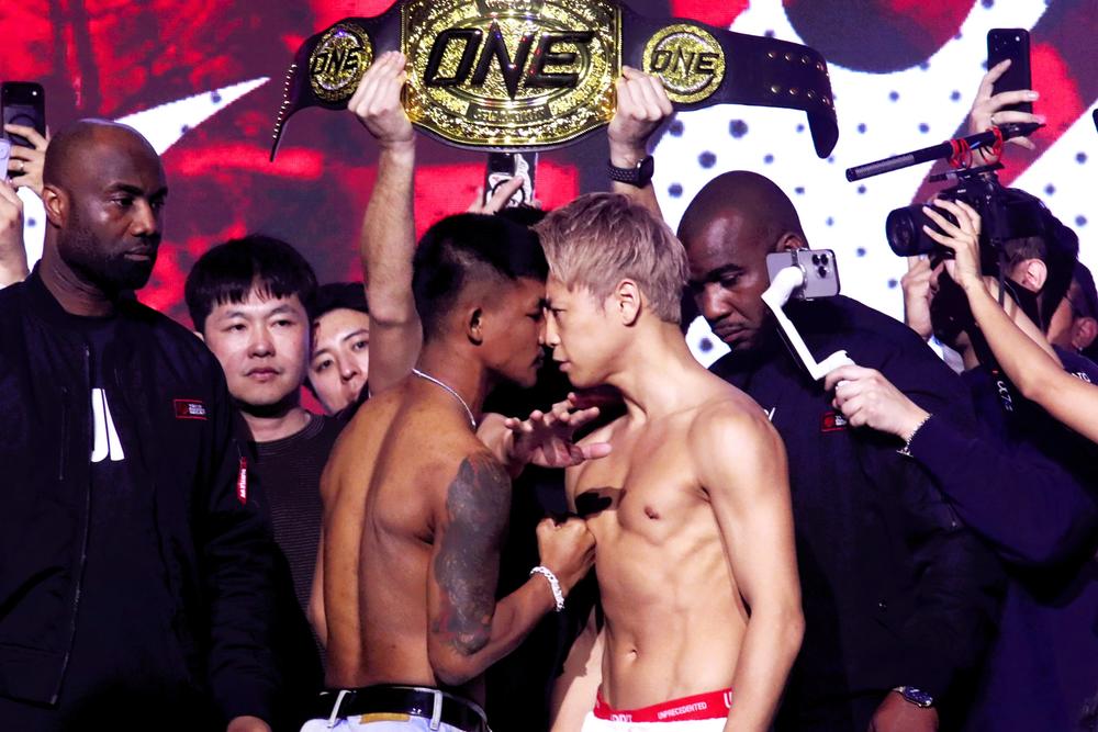 【ONE】武尊とロッタンが公開フェイスオフ!額を押し付け合う最後のバチバチのにらみ合い「心と身体の全てを使ってロッタン選手を倒します」