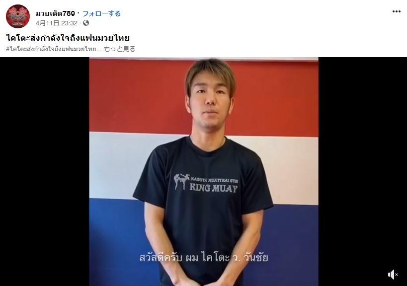 【ムエタイ】集団感染で窮地に立つタイ・ムエタイ界へ福田海斗が応援メッセージ、現地で大きな反響