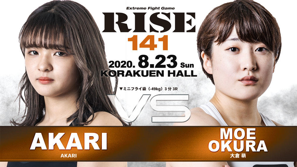 2020年8月23日(日)東京・後楽園ホール『RISE 141』の対戦カード第一弾が発表された。今大会は7月19日に開催された『RISE 140』よりも200名ほど収容人数を増やした700名規模での開催となる。もちろん、マスク着用必須や距離を空けた座席配置など新型コロナウイルス対策は引き続き行われる。