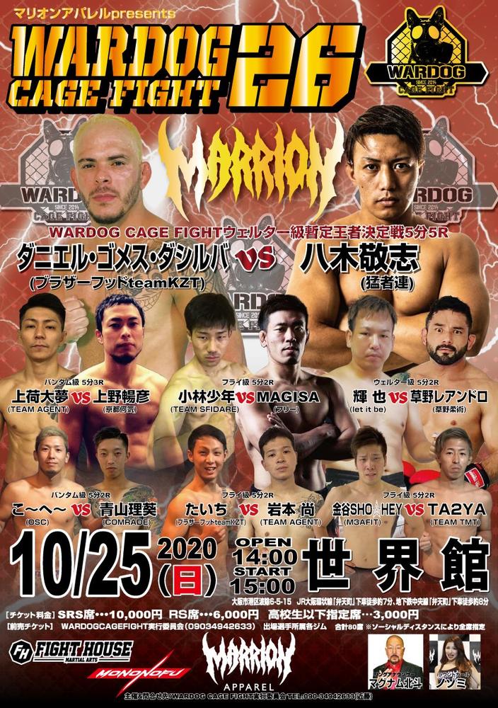 2020年10月25日(日)、大阪市・弁天町世界館にて開催される「マリオンアパレル present WARDOG.26」のカードが発表された。