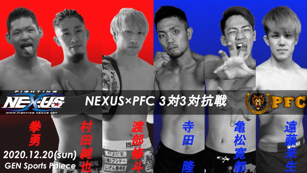 2020年12月27日(日)東京・大久保のGENスポーツパレス4Fにて、「NEXUS SPROUT.1」(11時~)、「Fighting NEXUS vol.20」(15時~)、「Fighting NEXUS vol.21 × PFC.24」(18時~)の3大会同日開催が決定。