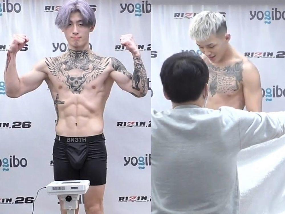 ニュースMMA2020.12.30【RIZIN】平本蓮が一発クリアも萩原京平が再計量へ 2020年12月31日(木)さいたまスーパーアリーナで開催される『Yogibo presents RIZIN.26』に出場する全選手の前日計量が午前10時から、YouTubeライブにて公開された。 第8試合の「68kg契約」(5分3R・ヒジ有り)で対戦する平本蓮(THE PANDEMONIUM)は、紫色に染めた長髪のまま67.80kgのアンダーで一発クリア。 しかし、萩原京平(SMOKER