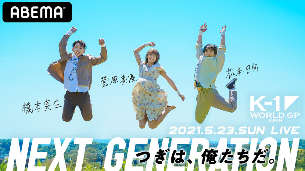 2021年5月23日(日)に大田区総合体育館にて開催される『K-1 WORLD GP 2021 JAPAN~K-1バンタム級日本最強決定トーナメント~』に向け、同大会を「格闘チャンネル」で14時から全試合完全独占生中継を行う「ABEMA」が、橋本実生、松本日向、菅原美優の3選手を起用したオリジナルの番組ビジュアルを公開した。
