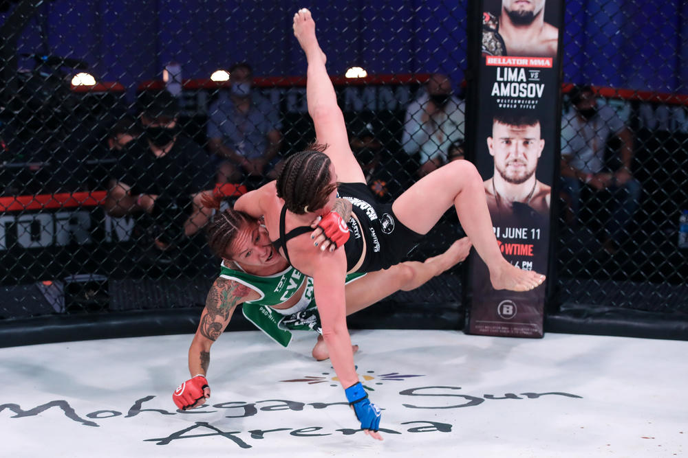 6月11日の「Bellator260」より有観客となる同団体にとって、区切りとなる無観客試合のメインは、世界女子フェザー級(145ポンド・65.8 kg)選手権試合(5分5R)。王者クリス・サイボーグ(ブラジル)