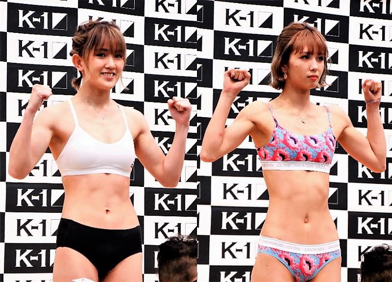 【K-1】カラフルな菅原美優とモノトーンのMIOが計量パス、「怖い」と警戒する菅原にMIOは「いじめたくなりました」