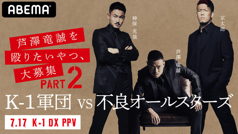 K-1 JAPAN GROUPのオンライン特化型の新ライン『K-1 DX』(ケイワン ディーエックス)の第3回配信「芦澤竜誠を殴りたいやつ、大募集Part.2」が2021年7月17日(土)に「ABEMA PPV ONELINE LIVE」にて配信される。