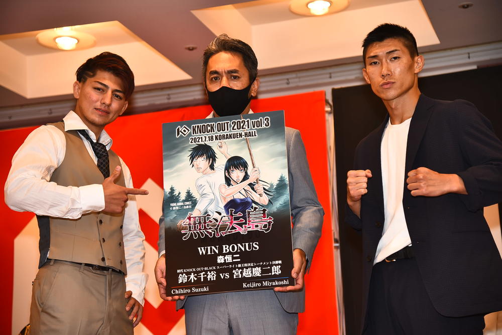 第8試合の初代KNOCK OUT-BLACKスーパーライト級王座決定トーナメント決勝3分3R延長1Rで対戦する、鈴木千裕(クロスポイント吉祥寺)とWBCムエタイ・インターナショナル・ライト級王者の宮越慶二郎(拳粋会宮越道場)は、共に64.8kg