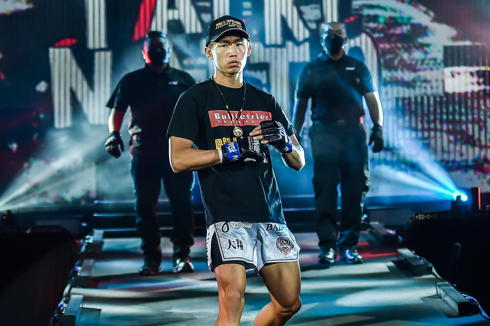 2021年9月24日(金)シンガポール・インドアスタジアムで行われた「ONE:REVOLUTION」で、元ONEフライ級キックボクシング世界王者のペッダム(タイ)を相手に、オープンフィンガーグローブでのムエタイルールで判定2-1で勝利した内藤大樹(BELLWOOD FIGHT TEAM)。