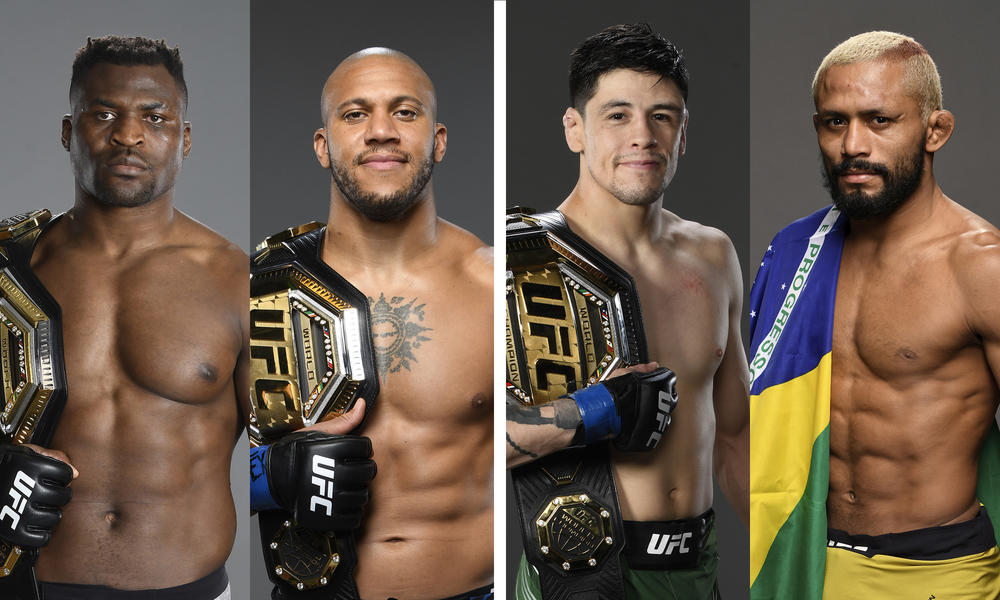 メインイベントは、正規王者フランシス・ガヌーと暫定王者シリル・ガーヌのヘビー級王座統一戦。さらにフライ級王者ブランドン・モレノvs.前王者デイブソン・フィゲイレードによる3度目の決着戦となるフライ級選手権試合も組まれている。